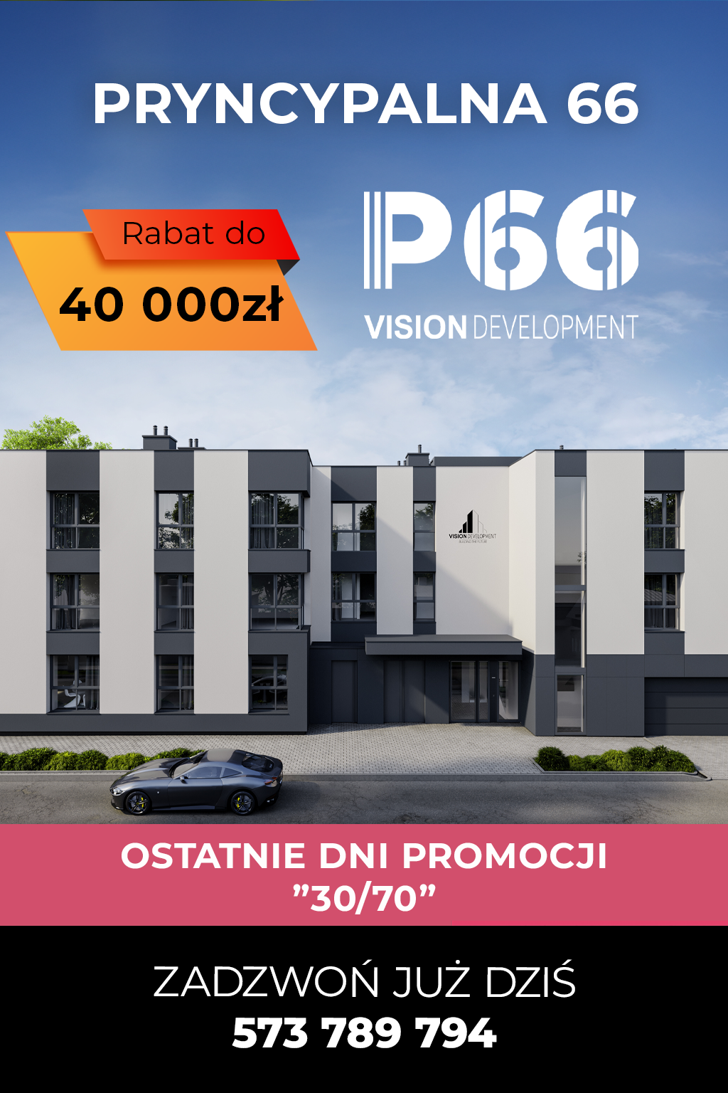 Pryncypalna 66 to nowa inwestycja Vision Development, zlokalizowana w Łodzi, u zbiegu ulic Pryncypalnej i Mieszkalnej. Osiedle wyróżnia się doskonałą komunikacją z centrum miasta oraz spokojnym, kameralnym charakterem.